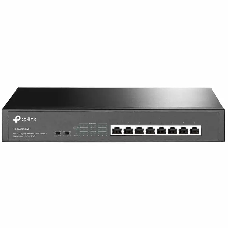 The TP-Link TL-SG1008MP is an 8-Port Gigabit Desktop/Rackmount Switch with full PoE+ support on all ports. Ideal for small offices and home networks, it delivers high-speed connectivity and power over Ethernet to devices like IP cameras, wireless access points, and VoIP phones. This compact switch offers simple plug-and-play setup with a reliable power budget, making it an efficient and cost-effective solution for powering your network devices.