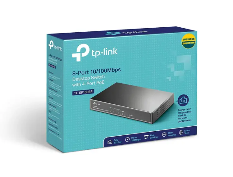 TP-Link 8-Port 10/100Mbps Desktop Switch with 4-Port PoE+ – TL-SF1008P